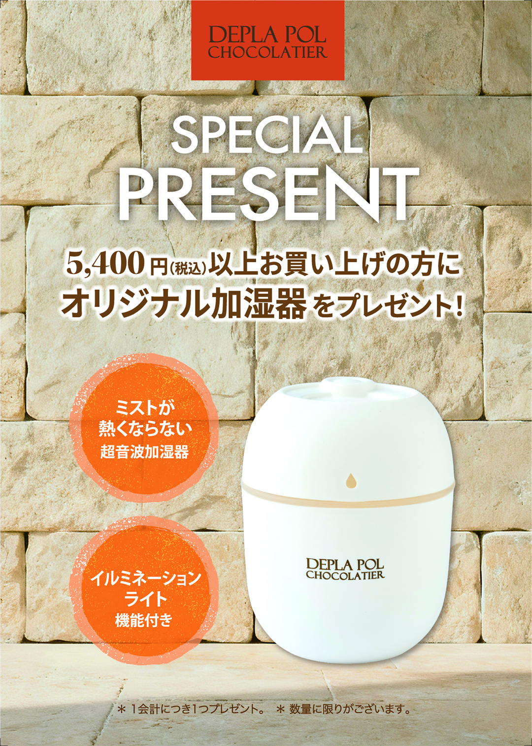 5,400円(税込)以上お買い上げのお客様へオリジナルロゴ入り加湿器をプレゼント✨